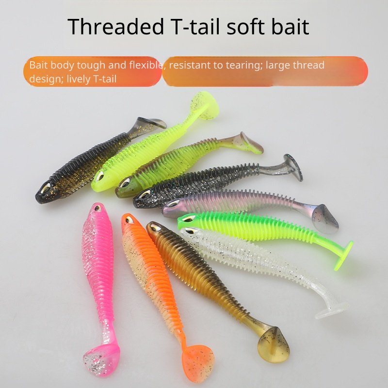 Spiral T-tail artificial fish bait, sinking soft bait with a wave-shaped design and realistic fish eyes. Suitable for a variety of fish species and can be used in rivers, lakes, oceans, and streams. Available in multiple sizes. Minimum order 200 bags.